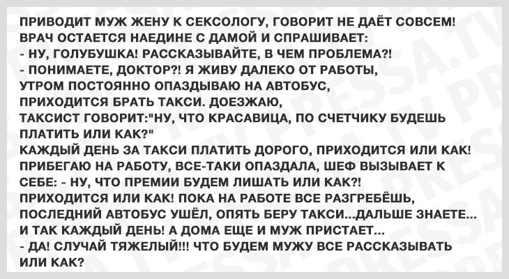 2018-08-18 08:46:21 @pressa.tv в Анекдоты 22 свежих анекдота Подборка свежих анекдотов и смешных цитат на субботу. цитаты анекдоты картинки с надписями почитать +32 Комментарии 0 Просмотров 17.9K Внимание! Комментарии нарушающие правила сайта, будут удалены Отправить Противостояние с любителем дальнего света на дороге Кладоискатели В Китае в конфликте из-за парковочного места победили высокие технологии Обезьяна украла кофе и сразу же поплатилась за это Эму - суетолог из семейства птиц Мужик смонтировал себя в фильм про Шрека, чтобы сделать оригинальное предложение девушке