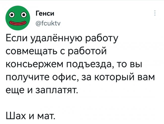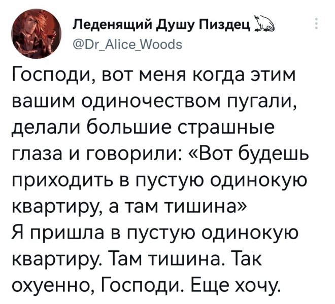 2023-01-19 13:47:51 @pressa.tv в Картинки с надписями Юмор из соцсетей Авторские шутки и комментарии из социальных сетей юмор из соцсетей смешные твиты скриншоты смешные комментарии +77 Комментарии 0 Просмотров 58.3K Внимание! Комментарии нарушающие правила сайта, будут удалены Отправить Мемы и картинки Shit-овая в квартире Мгновенная карма за непропуск спецтранспорта Музыкальная минутка ностальгии Съёмки нового сезона «Ходячих мертвецов» стартовали в Питере Вакансия, которая бы меня заинтересовала