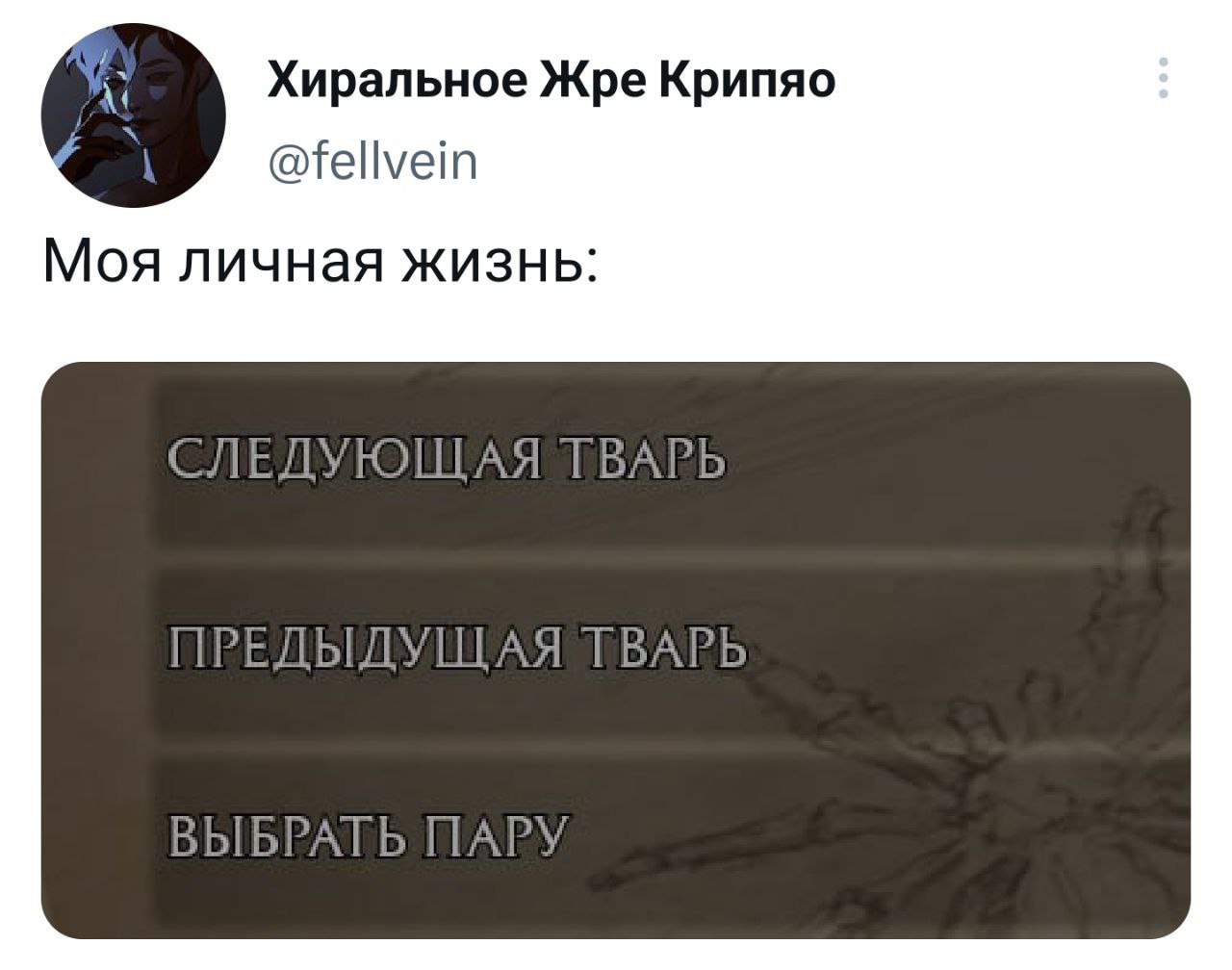 2023-03-14 13:39:14 @pressa.tv в Картинки с надписями Юмор из соцсетей Авторские шутки и комментарии из социальных сетей мемы скриншоты юмор из соцсетей смешные твиты +112 Комментарии 2 Просмотров 48.5K Внимание! Комментарии нарушающие правила сайта, будут удалены Отправить миша 14 марта 2023 18:49 +3 на фото где ким,вид у рабочего как будто его напарника превратили в фарш. Ответить Руслан 14 марта 2023 22:11 +2 Да на фото из КНДР вообще обычно Ким единственный, кто толстый и улыбающийся Ответить Мемы и картинки Shit-овая в квартире Мгновенная карма за непропуск спецтранспорта Музыкальная минутка ностальгии Съёмки нового сезона «Ходячих мертвецов» стартовали в Питере Вакансия, которая бы меня заинтересовала