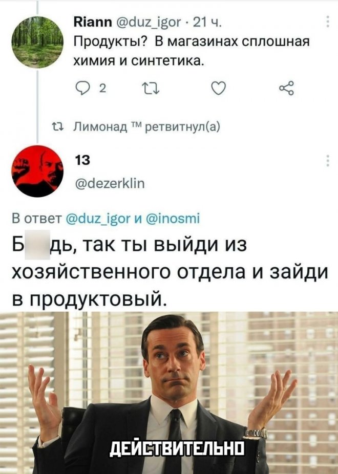 2023-04-25 12:16:38 @pressa.tv в Картинки с надписями Юмор из соцсетей Авторские шутки и комментарии из социальных сетей мемы юмор смешные картинки юмор из соцсетей +107 Комментарии 3 Просмотров 49.8K Внимание! Комментарии нарушающие правила сайта, будут удалены Отправить дима 25 апреля 2023 21:22 +1 костик-военком! Ответить Гость никто 25 апреля 2023 21:22 -5 Женщины из 60-х реально выглядели как бабки уже в 20 лет. Ответить 01 25 апреля 2023 21:44 +2 У меня пять джинсавэто грустный стихНе влезает жопани в один из них... Ответить Девушка заказала домой новогоднюю ёлку, а бонусом получила новых питомцев Китайская очищающая масочка для сковородок В Дубае планируют построить 580-метровый небоскрёб - Emirates Air Hotel с настоящим A380 на крыше Pontiac Bonneville 1964 года выпуска Турецкий певец прямо во время выступления ловко поймал ртом сигарету, которую ему кто-то бросил из зала В Японии, когда вы забираете кота из приюта, надо, чтобы он лично всё подписал