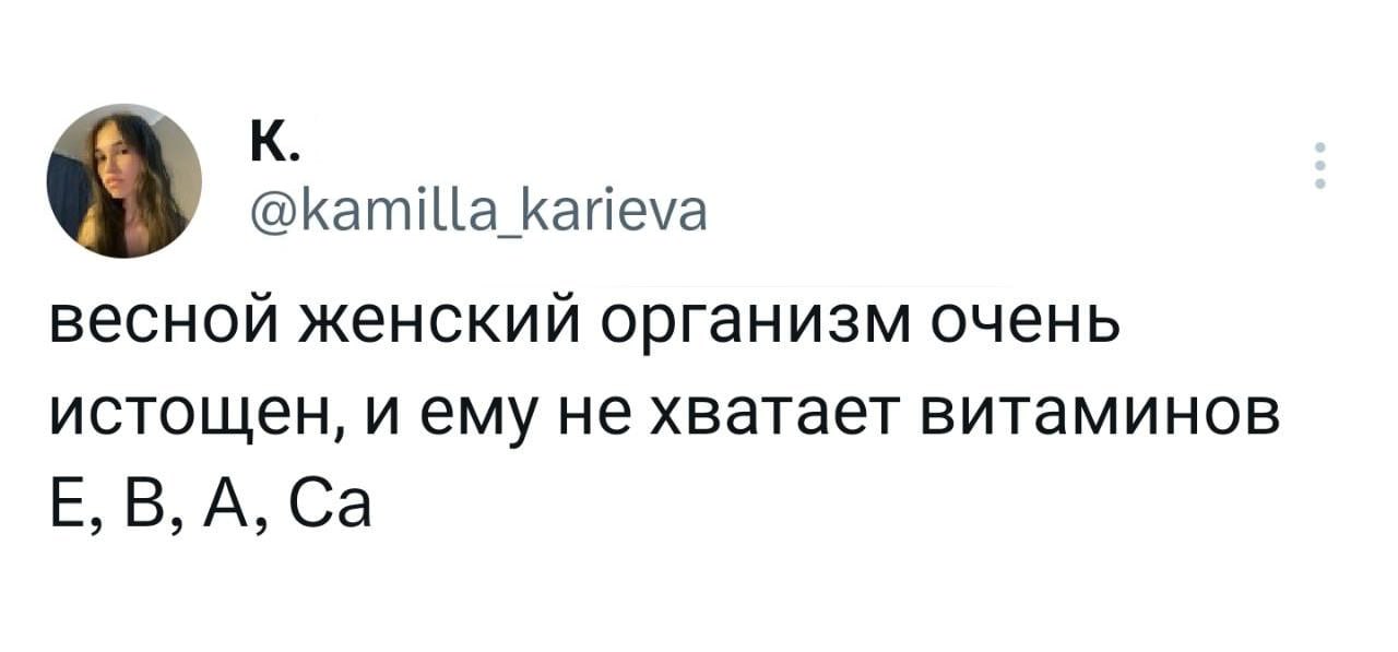 2023-05-11 12:13:43 @pressa.tv в Картинки с надписями Юмор из соцсетей Авторские шутки и комментарии из социальных сетей мемы юмор из соцсетей смешные твиты скриншоты +94 Комментарии 1 Просмотров 56.1K Внимание! Комментарии нарушающие правила сайта, будут удалены Отправить Гость Кость 11 мая 2023 15:19 0 Про EBACa угар))) Ответить Один из самых редких океанских феноменов случайно обнаружили сёрферы из Австралии Мемы и картинки Строительство кухни Просто так совпало Случайные совпадения В Казахстане спасли влюблённую пару лебедей от смерти в замёрзшем озере