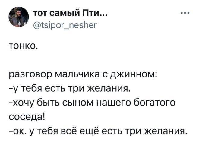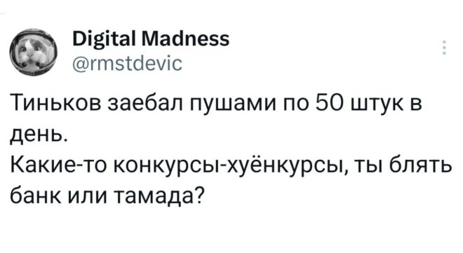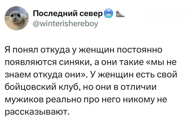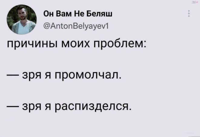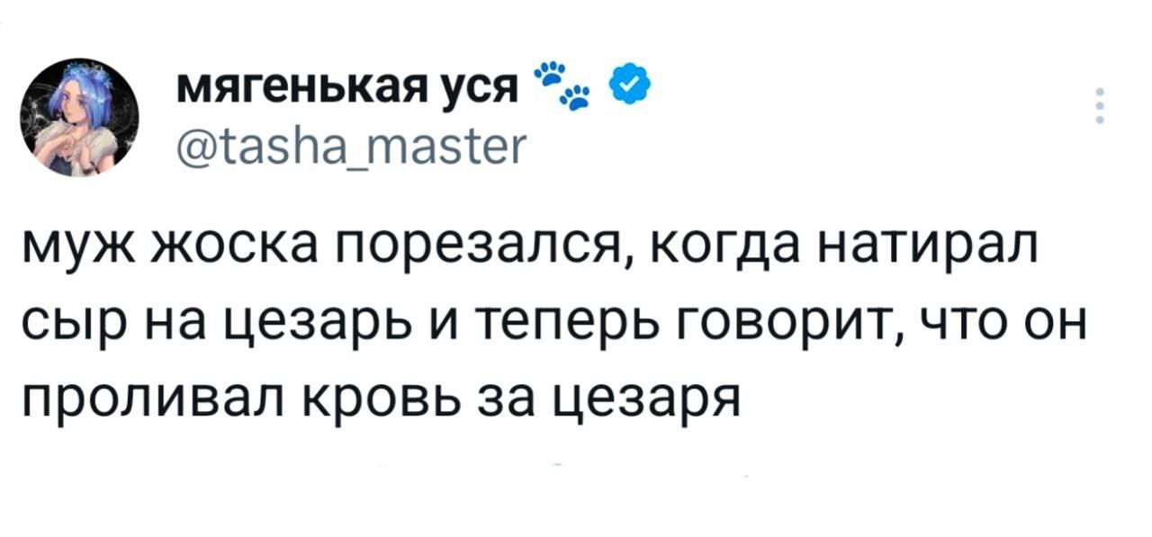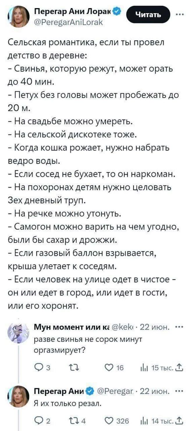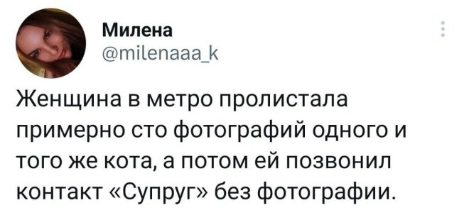 2025-10-17 11:08:06 @pressa.tv в Картинки с надписями Юмор из соцсетей Авторские шутки и комментарии из социальных сетей юмор из соцсетей смешные твиты скриншоты смешные комментарии картинки с надписями +118 Комментарии 0 Просмотров 41K Внимание! Комментарии нарушающие правила сайта, будут удалены Отправить Юмор из соцсетей В Якутии хитрый волк притворился собакой Чем больше сигналишь, тем дольше ждешь Затейница Запаска в автомобиле Luxgen Как часто вы меняете постельное белье?