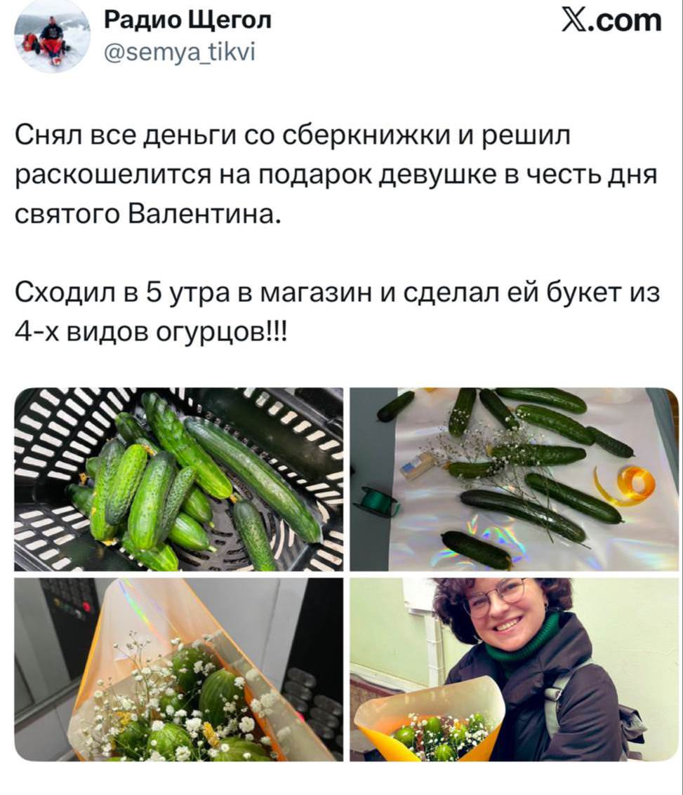 2026-02-15 08:05:56 @pressa.tv в Картинки с надписями Парни вчера не скупились и дарили своим подругам самые щедрые подарки на День святого Валентина Самые дорогие букеты для самых любимых день святого валентина огурцы подарки +9 Комментарии 1 Просмотров 3.4K Внимание! Комментарии нарушающие правила сайта, будут удалены Отправить Очень Сегодня, 11:31 0 Достойно публикации.. Ответить Рыба проглотила гигантскую сосиску за миллисекунды Что будет, если нажать на все педали одновременно Сажали помидоры, а оказалось, не они В сети показали лайфхак, как проходить 10 000 шагов в день — для этого нужно гулять по Хогвартсу Эксперименты с кипятком на замерзшем озере Безмятежная жизнь ЗОЖника