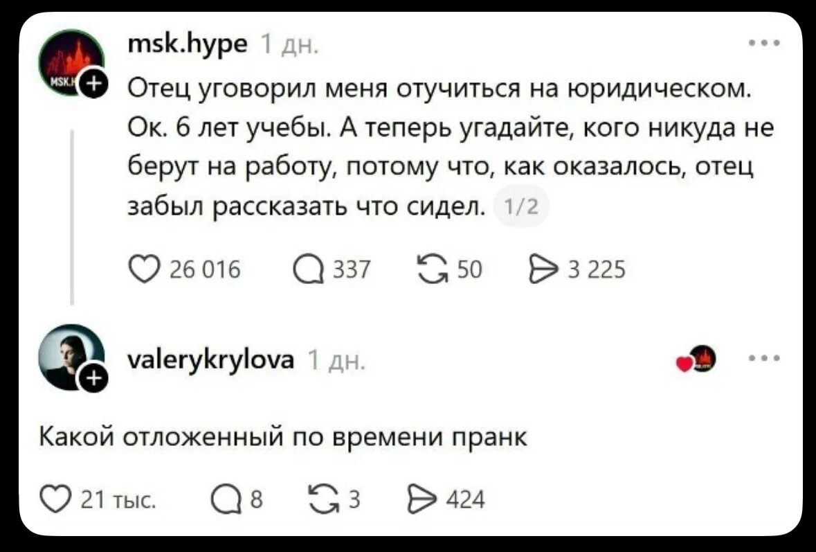 2026-04-16 11:12:59 @pressa.tv в Картинки с надписями Юмор из соцсетей Авторские шутки и смешные комментарии из социальных сетей юмор из соцсетей смешные твиты скриншоты смешные комментарии +40 Комментарии 0 Просмотров 5.5K Внимание! Комментарии нарушающие правила сайта, будут удалены Отправить Зена - королева воинов Мемы и картинки Идеальный продукт в рекламе не нуждается Зумеры на работе Мемы и картинки Юмор из соцсетей