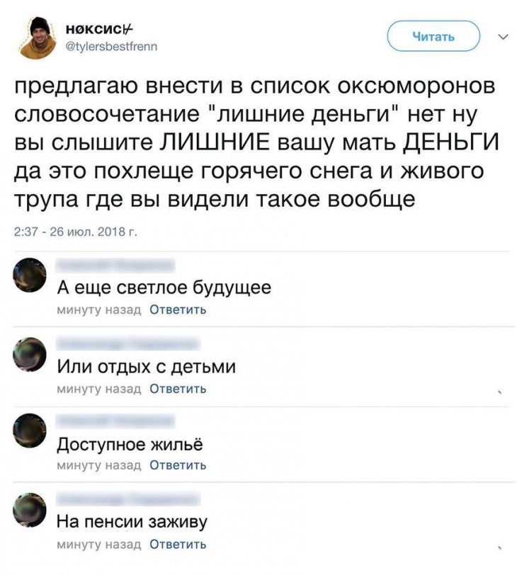 2019-02-11 12:38:08 @pressa.tv в Картинки с надписями Скриншоты смешных комментариев Подборка прикольных твитов, смешных смс и комментариев из соцсетей скриншоты смс приколы смешные комментарии прикольное +61 Комментарии 0 Просмотров 36.4K Внимание! Комментарии нарушающие правила сайта, будут удалены Отправить Мемы и картинки В Азии на фоне эпидемии одиночества хайпанули дакимакуры, которые умеют обнимать Самый красивый гол 2025 года Горы в провинции Гуйчжоу полностью покрыты солнечными панелями вплоть до горизонта В Москве началось восстание машин Деликатный подход
