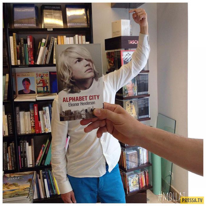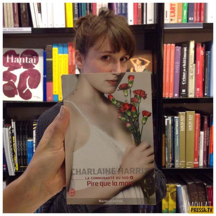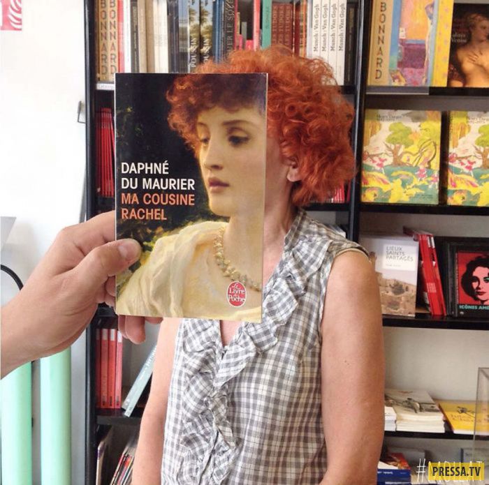 Сотрудники книжного магазина решили хоть на немного отвлечься от работы и перевоплотиться в персонажей с обложек книг. Очень забавно наблюдать, как, поймав удачный ракурс, рисунок с обложки точно вписывается во внешность человека. Далее, они решили фотографировать и посетителей, которые отлично бы подходили под необходимые обложки книг. Что из этого вышло, можно посмотреть ниже.
