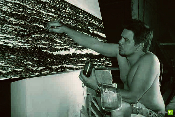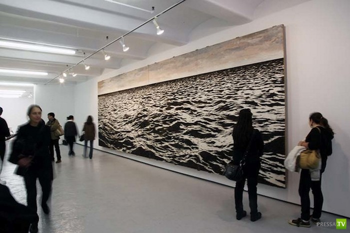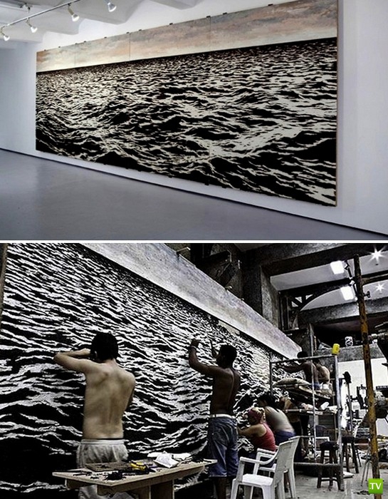 Глядя на пейзаж издалека, можно подумать, что это всего лишь фотография спокойного открытого моря, но, как подойдешь, секрет реалистичности морского пейзажа открывается. Даже с тридцатью помощников Йоану Капоте понадобился месяц ежедневной многочасовой работы, чтобы закончить эту фреску из рыболовных крючков.