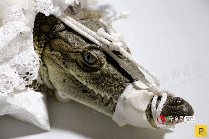 Невеста была одета в белое платье. Жених по окончании церемонии поцеловал крокодила, пасть которого в целях безопасности была накрепко перевязана.