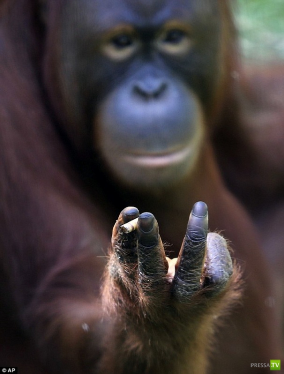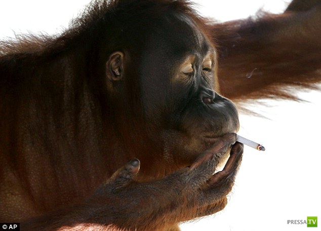 Тори (Орангутанг) начала курить десять лет назад, когда посетители зоопарка Тару Jurug в Индонезии,бросали ей в вольер подкуренные сигареты, так тори и пристрастилась к курению. Жизнь тори изменилась после рождения малыша, мать сразу бросила курить ради здоровья своего малыша