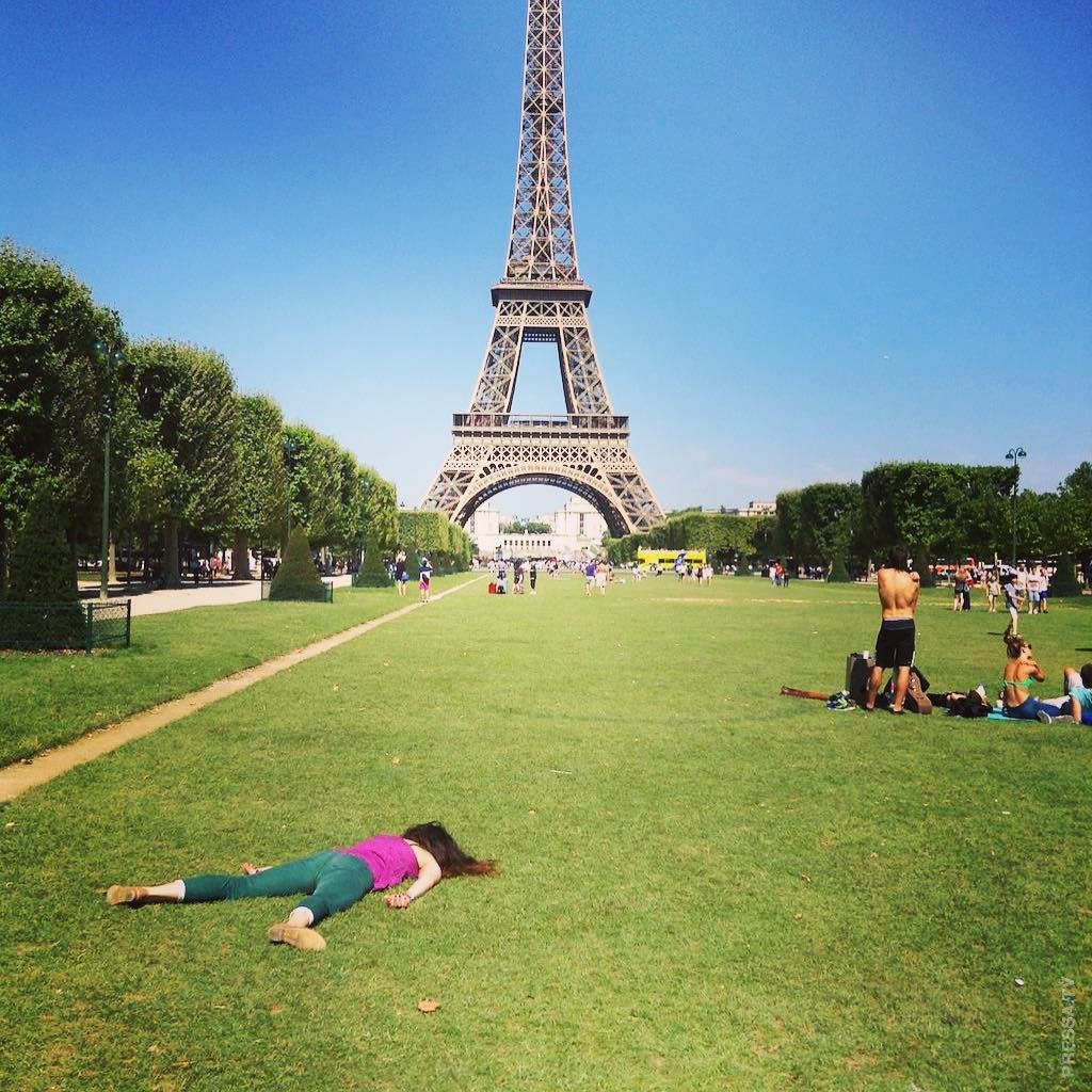 Женщина "умирает" в самых популярных местах мира