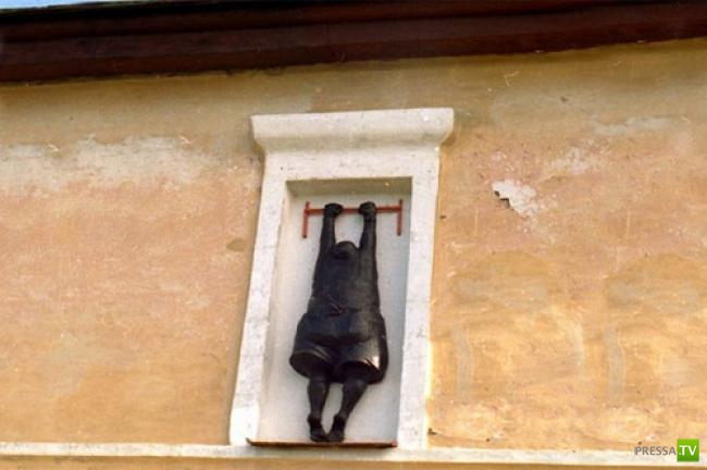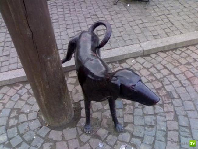 Необычные статуи и скульптуры, которые можно встретить во многих городах мира, это тоже стрит-арт. Монументальный, странный и порой довольно остроумный. Много таких памятников разным событиям, людям, животным и персонажам есть и в России. Например, в Томске стоит памятник счастью, которое в самом простом представлении заключается не в достижениях и любви, а в простом чувстве сытости и тепла. И это чувство для бывших граждан Советского Союза олицетворяет волк из мультика про «ну ты это… если что… заходи». Судя по обилию памятников, посвященных ЖКХ, жители России ценят и простой бытовой комфорт.