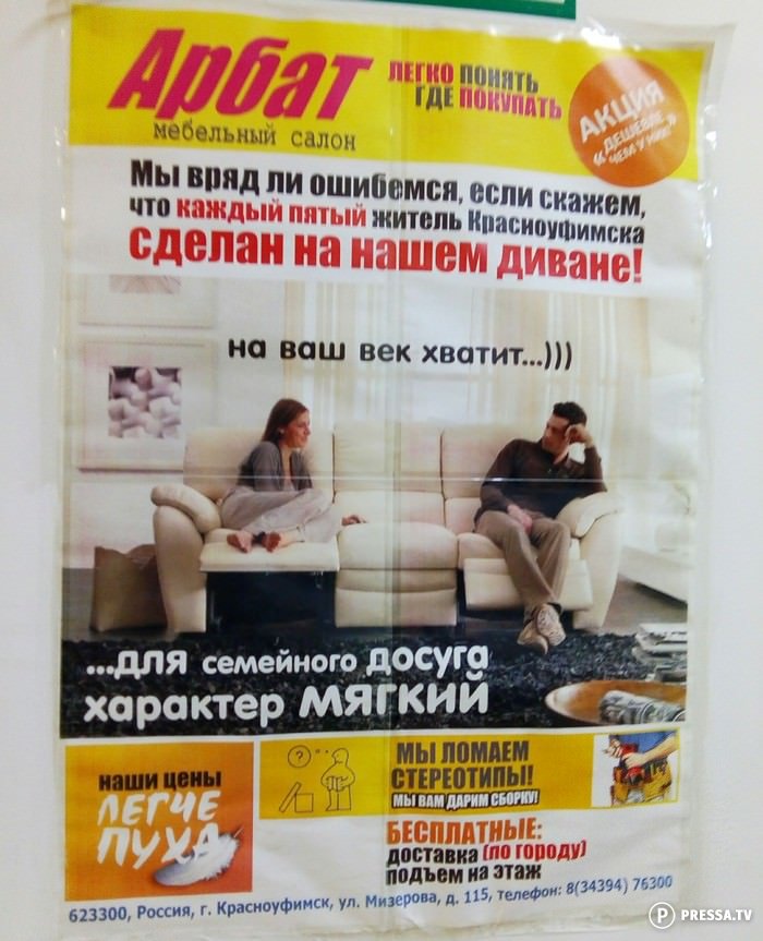 2018-06-10 08:34:40 @pressa.tv в Фото приколы Маразмы отечественного маркетинга Свежая подборка смешной и маразматичной рекламы с просторов нашей необъятной. маразмы в рекламе маркетолог от бога смешное юмор +32 Комментарии 0 Просмотров 19K Внимание! Комментарии нарушающие правила сайта, будут удалены Отправить Шерстяные агрессоры Русификация китайских автомобилей вышла на новый уровень Обезьяна украла кофе и сразу же поплатилась за это Девушка заказала домой новогоднюю ёлку, а бонусом получила новых питомцев Любовница покинула квартиру по фасаду здания, скрываясь от жены возлюбленного Как рекламные баннеры попадают на борт самолета
