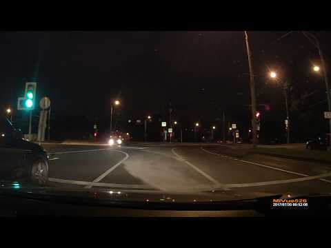 см.0.40 В Бразилии проезжающий автомобиль зацепил припаркованный у дома и лег на бок, а припаркованный автомобиль от удара укатился вниз по улице.