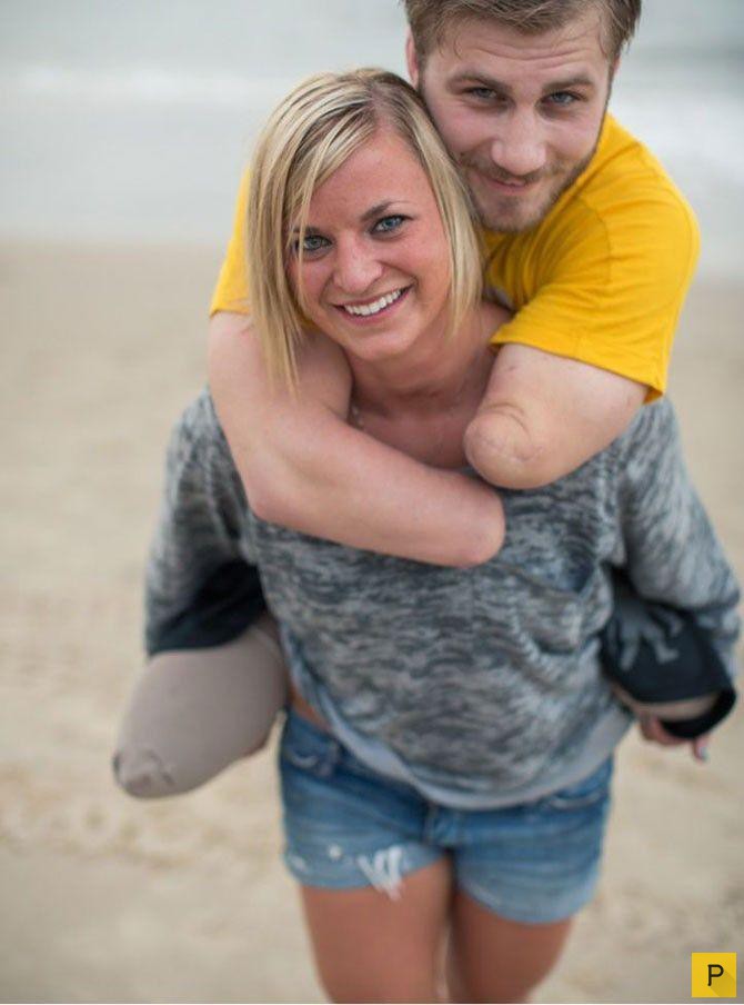 Эта история настоящей любви облетела интернет несколько лет назад. Ветеран войны в Афганистане, подорвавшись на бомбе, потерял все конечности, но чудом остался жив. По возвращении домой его 23-летняя невеста Келли не только не бросила любимого, но и помогла ему в буквальном смысле снова «встать на ноги», даже несмотря на то, что ног у него больше нет.