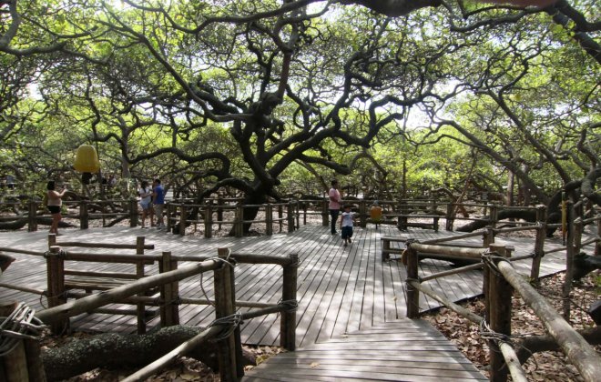 Если верить местной легенде, его посадил рыбак в 1888 году, но учёные считают, что дереву не меньше тысячи лет — его ветви тянутся не вверх, а в стороны, и пускают корни, касаясь земли — так оно разрастается дальше.