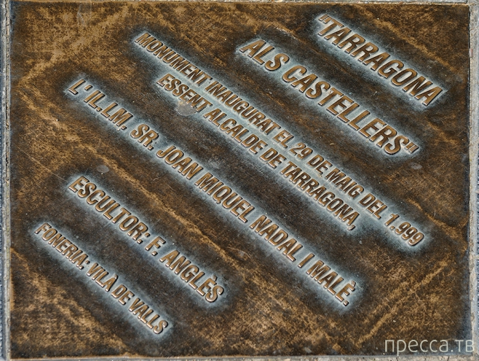 7. Первой достопримечательностью на моём пути (в районе пересечения Новой Рамблы с улицей Carrer del Pare Palau) оказался бронзовый памятник строителям человеческих башен-кастельс (Monument als Castells) (одна из важнейших каталонских традиций). Автором этого интересного памятника является современный каталонский скульптор Франсеск Англес (Francesc Anglès) (р. 1938), для творчества которого характерно изображение разнообразных человеческих групп в реалистичных сценах. Конкретно этот монумент был установлен в Таррагоне в 1999 году и изображает «пирамиду», состоящую из 219 полноразмерных человеческих фигур, которые составляют конструкцию quatre de vuit (то есть четыре человека на уровне в башне, состоящей из восьми уровней):