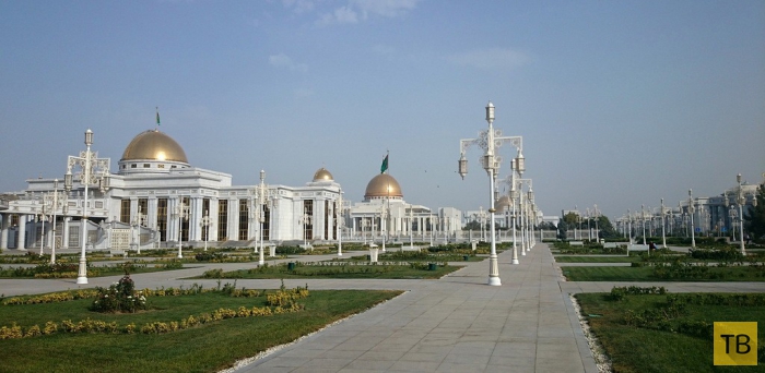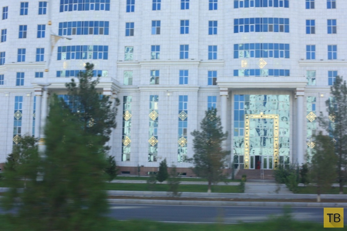 2. Ашхабад, по мнению туркменского руководства, должен стать беломраморной столицей. Сейчас около 550 зданий покрыты белым мрамором. Причем добывают мрамор не в туркменских горах, а завозят из Италии, Вьетнама и Турции. Говорят, что если строительная компания не может сразу представить нужное количество мрамора, то им не дают разрешение на начало строительства. Строят в основном французы, иранцы и турки. Больше всего нареканий к туркам. Говорят, что они строят быстрее всех, но явно халтурно, подворовывая стройматериалы. Ведь нужно строить не просто высотные здания, а сейсмоустойчивые здания — Ашхабад трясет ежедневно, четыре балла может быть несколько раз в год. Доверия к туркам меньше всего. Центр города уже полностью белоснежный и местами обильно покрыт золотом. Трудно поверить, что еще семь-восемь лет назад всей этой неземной красоты не было.
