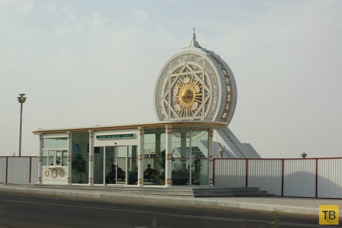 9. За остановкой одно из чудес Туркмении — самое большое в мире крытое колесо обозрения — 95 м. Почему крытое? Опять-таки, чтобы внутри было свежо и не жарко.