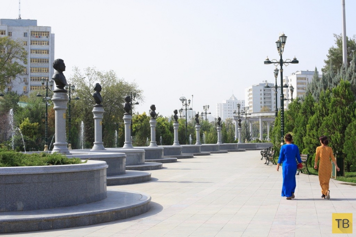 29. Балет, опера и цирк в Туркмении запрещены. Туркменбаши Великий как-то сказал: «Я не понимаю балет. Зачем он мне? …Нельзя привить туркменам любовь к балету, если у них в крови его нет». «Я как-то ходил с женой в Ленинграде на оперу «Князь Игорь» и ничего не понял». После обретения независимости руки у него были полностью развязаны, и опера с балетом ушли под запрет. А вот писателей почитают и уважают. Эта аллея в центре города украшена бюстами самых уважаемых туркменских писателей ХХ века. Книжных магазинов очень мало, все они маленькие, половина книг приходит сейчас из России. Иностранные газеты и журналы до сих пор под запретом, а вот местные журналы выходят огромными тиражами даже по нашим меркам. Например, один женский журнал (название не спросил) выходит тиражом более 100 тысяч экз.