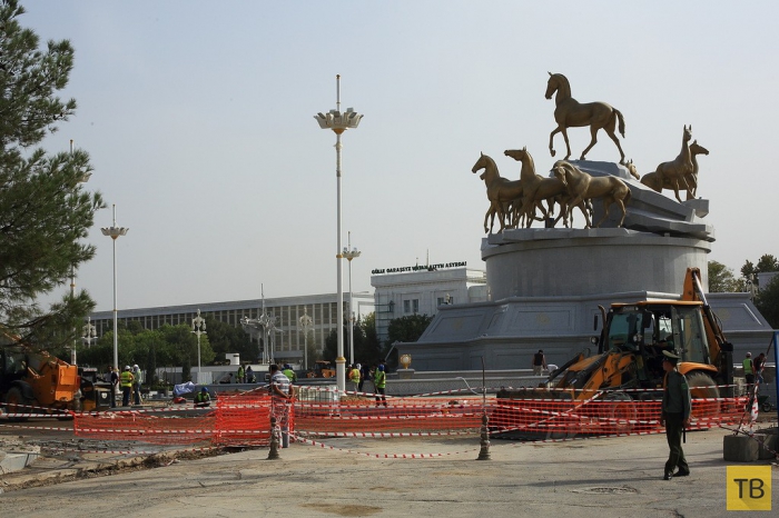 14. Сейчас сотни людей круглосуточно строят новую площадь перед новым президентским дворцом. Я так понимаю, что ахалтекинские кони также будут позолочены.