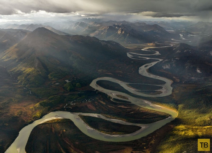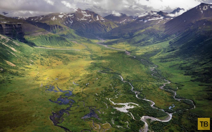 Вид с воздуха на долину реки Алатна, штат Аляска.