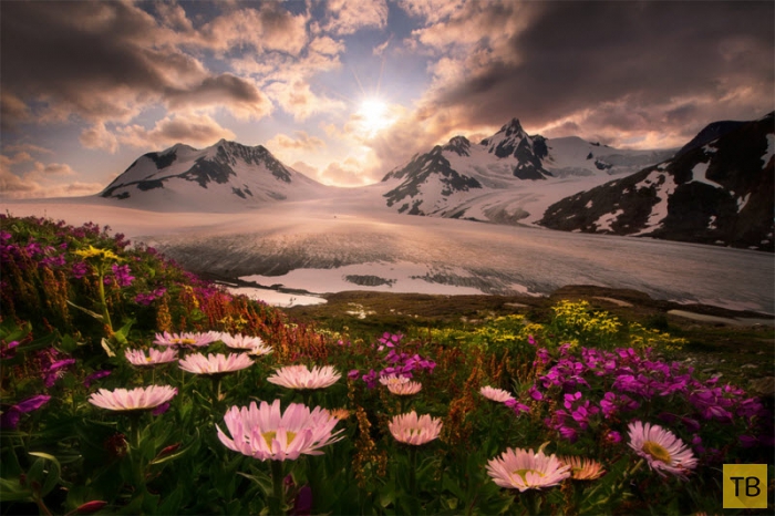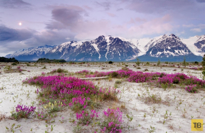 Цветы и горы на Аляске.