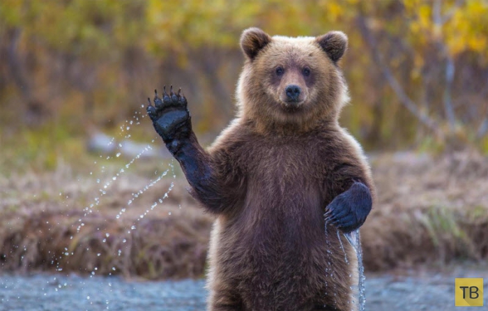 Медведь гризли здоровается. На Аляске проживают медведи гризли (иногда называемые бурым медведем).